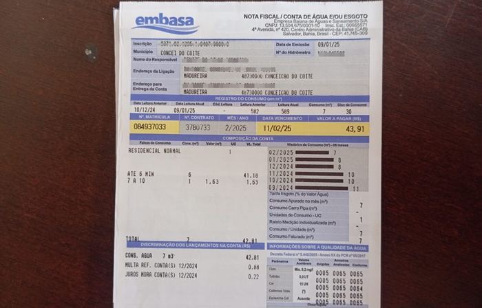 Ao receber qualquer conta para pagamento, é comum que o cliente direcione imediatamente o olhar ao valor e ao prazo final para pagamento, esquecendo de conferir outros campos importantes para melhor entendimento da fatura. No caso da conta da Embasa, o que nem todo mundo observa é que o valor a ser pago, que corresponde ao consumo de água já utilizada em grande parte no mês anterior, geralmente tem data de vencimento para 30 dias depois da data da coleta da leitura no hidrômetro.
