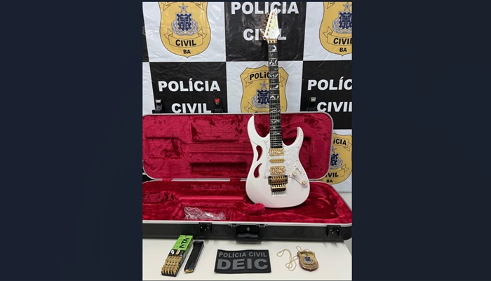 Equipes da Delegacia de Repressão a Furtos e Roubos (DRFR/Salvador), com o apoio da Coordenação de Inteligência do Departamento Especializado de Investigações Criminais (Deic), recuperaram, nea sexta-feira (7), uma guitarra rara, avaliada em R$ 50 mil, que havia sido furtada há seis meses. A recuperação ocorreu em um condomínio residencial localizado na BR-324, em Simões Filho.