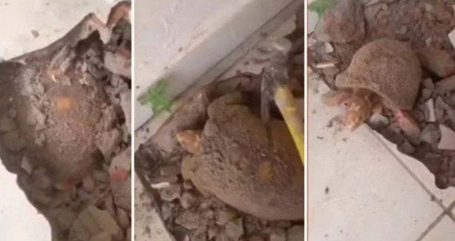 A história de um jabuti impressionou os moradores da cidade de Itacajá, no nordeste do Tocantins. O animal foi encontrado embaixo do piso de uma casa e sobreviveu quase 10 anos soterrado.