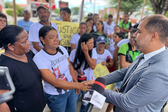 Em frente à delegacia, a tia do jovem, Jackeline Batista da Silva, conversou com o delegado responsável pelo caso, Luís Smyslov Freitas Filgueiras. Ela desabafou sobre a demora na conclusão do inquérito e a falta de respostas. “A gente está buscando justiça porque simplesmente a gente não obteve respostas. A gente ficou, botou advogado e tudo, mas infelizmente a justiça se calou, não deu resposta nenhuma a gente. Então, a gente resolveu fazer esse protesto para ver se a justiça se pronuncia, dá alguma resposta a gente, porque não é justo. São crianças dentro de casa perguntando pelo pai, uma mãe que não consegue dormir, infelizmente, é uma dor tremenda”, afirmou.