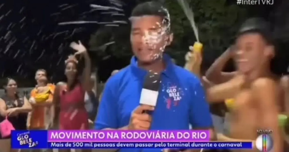 O repórter Josué Amador foi surpreendido durante a transmissão ao vivo do Carnaval do Rio de Janeiro nesta sexta-feira (28). Enquanto fazia a cobertura da folia, o repórter da TV RJ, afiliada da Globo, o jornalista foi surpreendido ao vivo por um grupo ao receber um jato de espuma no rosto.