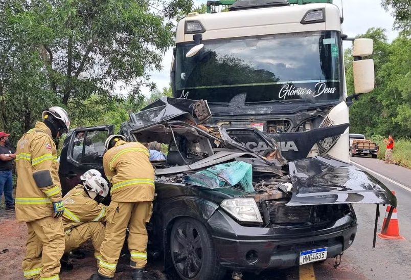 Três pessoas morreram e um adolescente ficou ferido após um carro bater de frente com uma carreta carregada de eucaliptos, na sexta-feira (21), na BR-418, no trecho de Mucuri, no extremo sul da Bahia.