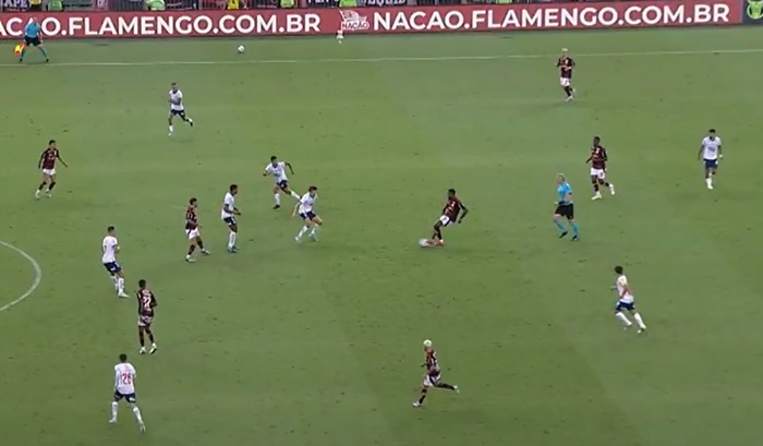 O Flamengo começou ligado na partida e foi para cima pressionar. Foi em um desses lances que Arrascaeta aproveitou uma cabeçada para abrir o placar após receber cruzamento de Michael. O time continuou pressionando a saída de bola para tentar forçar os erros do adversário. Léo Ortiz colocou uma bola no travessão, mas o ritmo caiu um pouco após o gol. Quem melhorou foi o Bahia, que uma grande chance com Kayky. O lado esquerdo foi o que funcionou melhor, mas faltou capricho na finalização.
