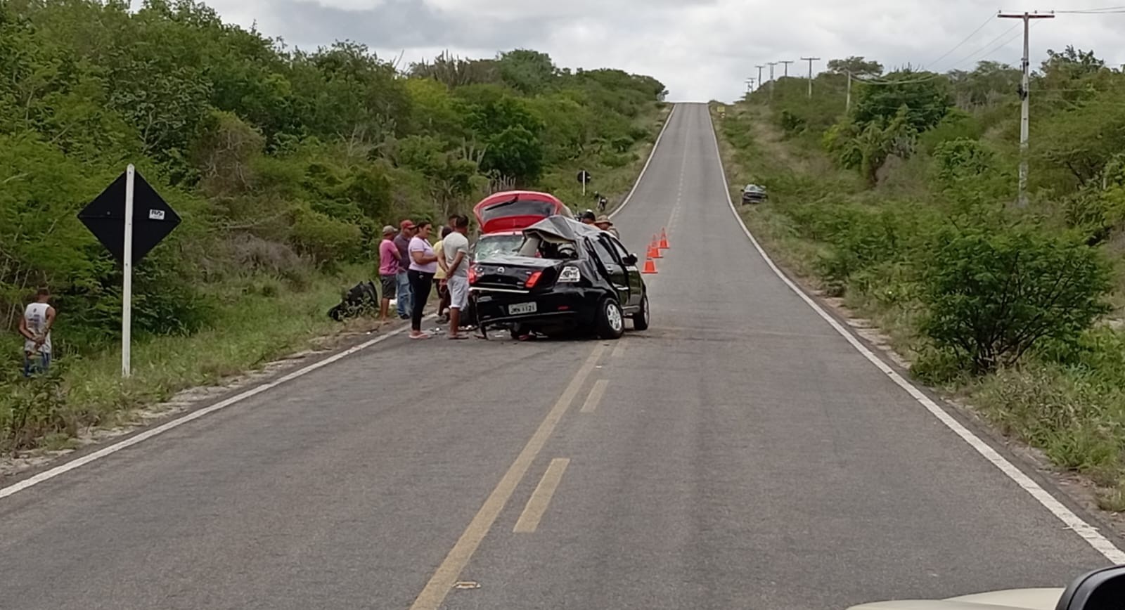De acordo com informações apuradas no local pelo Calila Notícias junto a Polícia Rodoviária Estadual (PRE), um Fiat Siena que seguia de São Domingos em direção a Valente, conduzido pelo músico tecladista Adson Ruan da Cruz Santos, perdeu o controle após uma curva. Informações extraoficiais indicam que o pneu traseiro do veículo estourou, fazendo com que Adson perdesse o controle da direção. O Siena desgovernado atingiu violentamente, de forma lateral, um Fiat Palio que trafegava no sentido contrário e era conduzido pelo aposentado Aderito Lopes dos Santos, popularmente conhecido como Seu Dero. Triste coincidência, senhor Dero é tio de Adson.