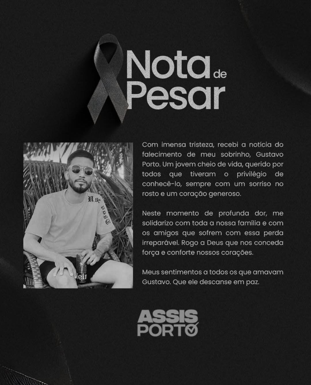 O prefeito e tio do jovem, Assis Porto divulgou uma nota de pesar