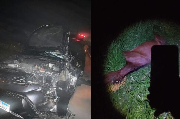 Nas redes sociais, o prefeito Cyro Nogueira informou que a esposa estava retornando de uma festa de formatura. A parte da frente do veículo ficou destruída e o animal morreu no local. A esposa e filha saíram ilesas do acidente.