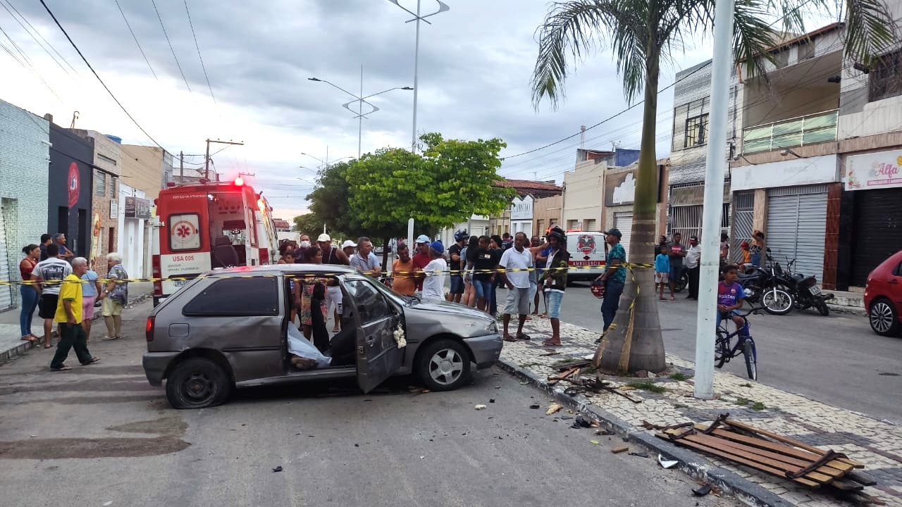 De acordo com relatos de testemunhas, um veículo Volkswagen Gol perdeu o controle, subiu na calçada e desgovernado cruzou a rua e colidiu violentamente contra uma palmeira e um banco do canteiro central. O impacto foi tão forte que o carro capotou, ficando com as quatro rodas para cima.