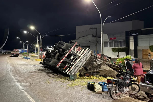 Na noite de sexta-feira, 18, por voltas da 23h40, um caminhão carregado de frutas que seguia de Juazeiro com destino a Salvador tombou no contorno de Capim Grosso, saída para Feira de Santana, nas proximidades do Posto Monumento.