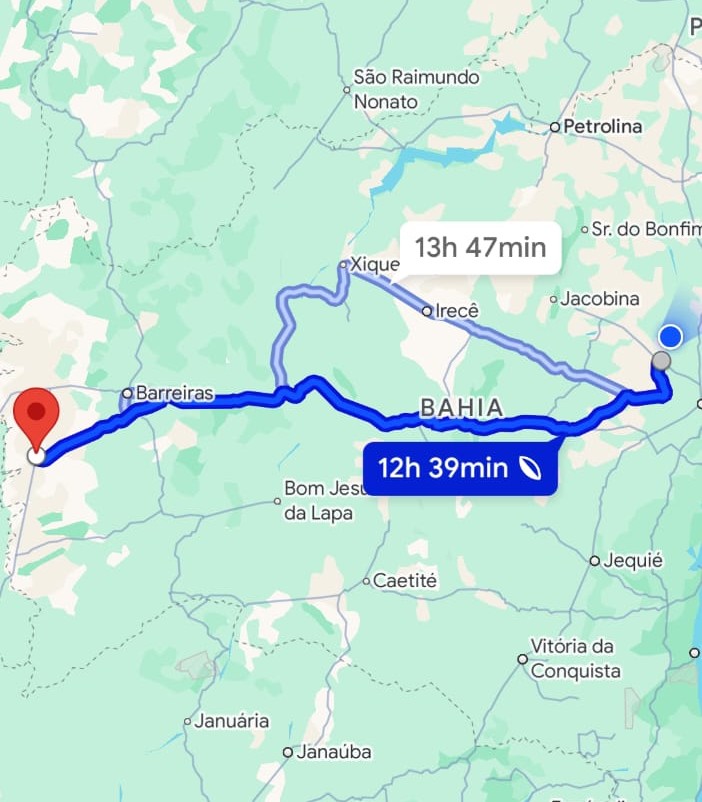 A distância entre Riachão e Roda Velha é de aproximadamente 900 km e o tempo de viagem estimado em 12h39