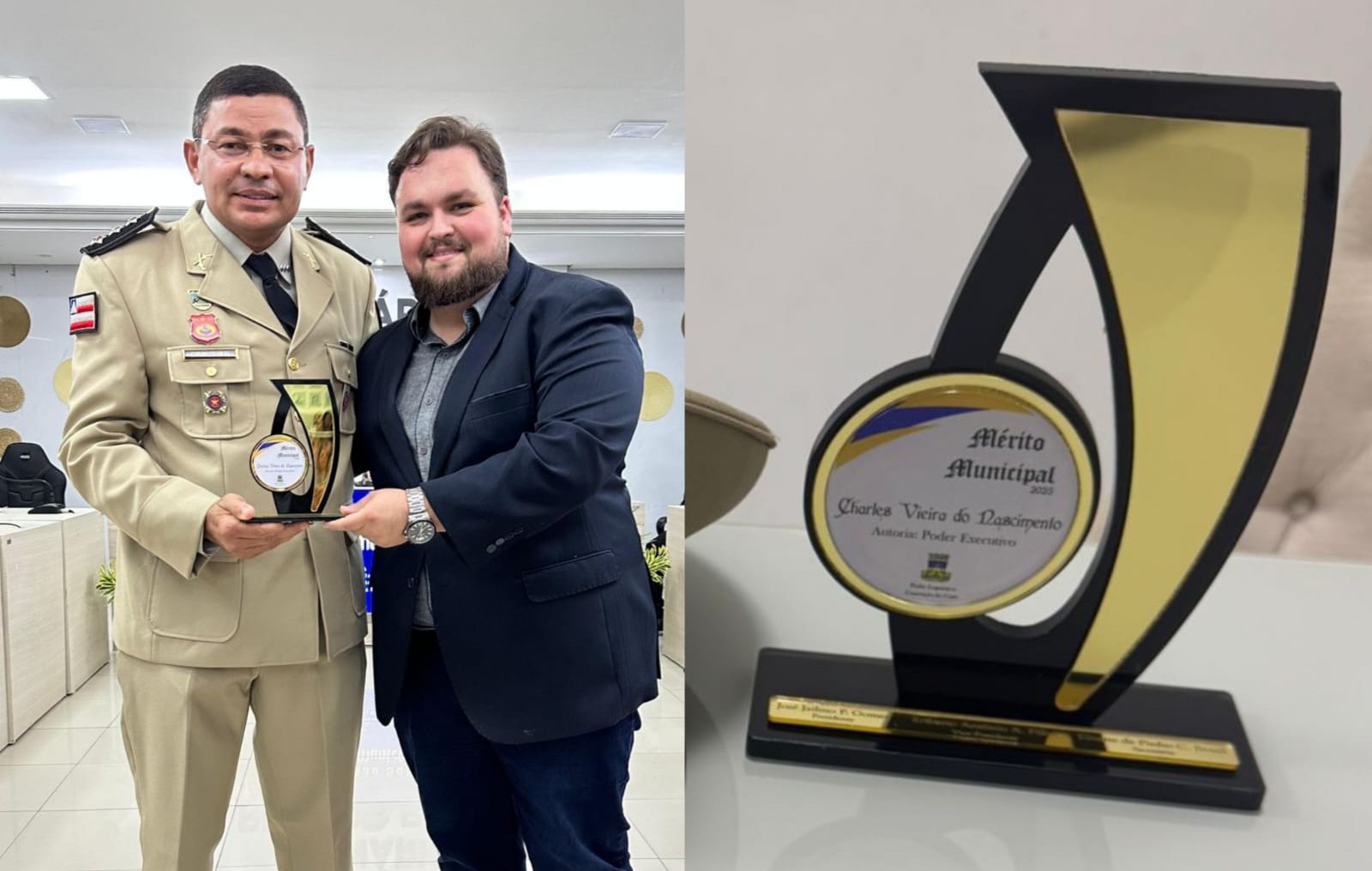 Além da Moção de Aplausos e do título de Cidadão Coiteense, o capitão Charles foi agraciado com a Medalha de Mérito Municipal, concedida pela Câmara Municipal por indicação do prefeito Marcelo Araújo