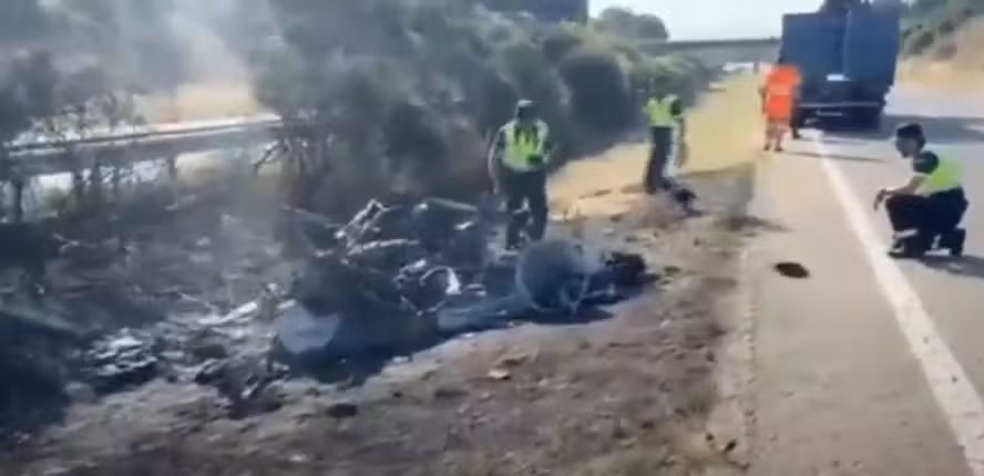 De acordo com a polícia local, o carro trafegava pela A-52, uma rodovia federal da Espanha, perto de Sanabria, quando um dos pneus estourou, jogando para fora da pista o carro, que pegou fogo na sequência.