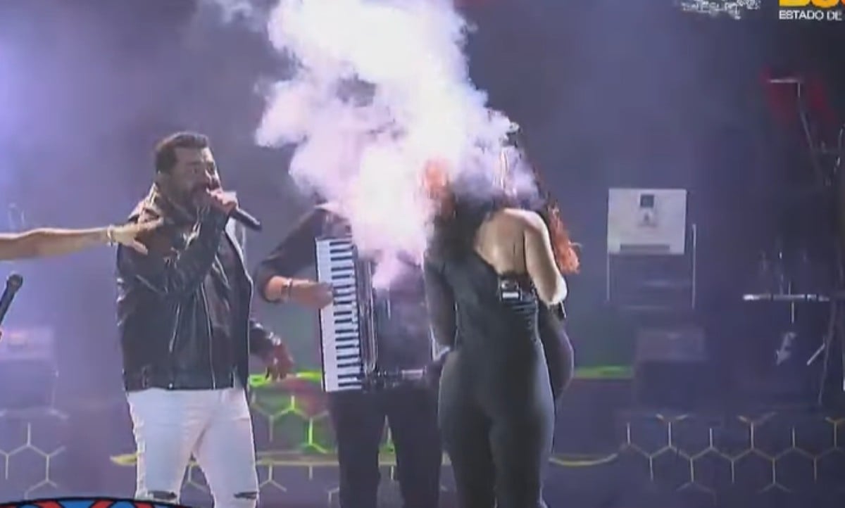Fogo atinge cabelo de backing vocal da banda Limão com Mel