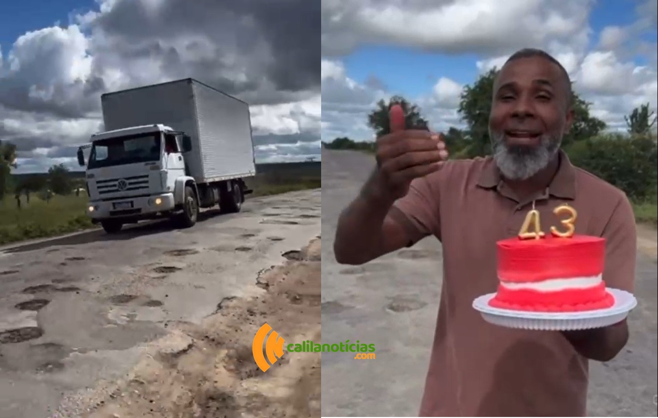 Uma cena inusitada e carregada de crítica viralizou nas redes sociais nesta sexta-feira, 11, quando o vereador licenciado Pastor Clemente Filho (PSDB), do município de Queimadas, atual secretário de Desenvovimento, levou um bolo de aniversário para o acostamento da BA-120. O gesto simbólico marcou os 43 anos da pavimentação do trecho entre Queimadas e Cansanção, no território do Sisal, que jamais passou por qualquer tipo de manutenção significativa desde que foi asfaltado.