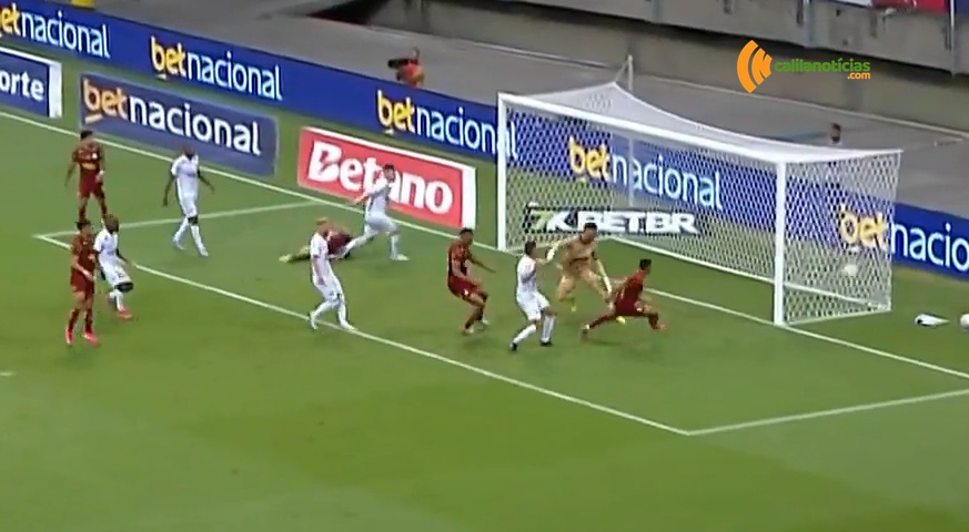A estrela de Tiago brilhou ao aproveitar o bom cruzamento de Éverton Ribeiro | Foto: reprodução CN do Premiere