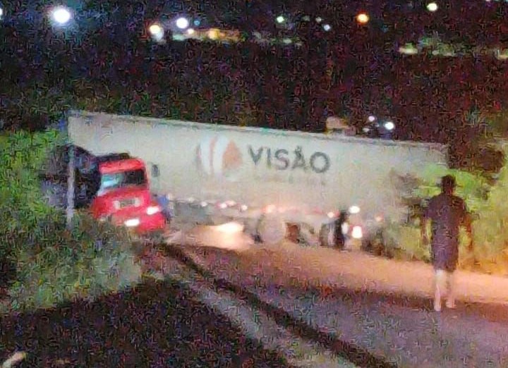 De acordo com informações divulgadas pela Polícia Rodoviária Federal (PRF), o motorista do veículo tentou evitar um acidente ao subir um quebra-molas na entrada da cidade, na tentativa de conter a velocidade da carreta. No entanto, sem controle e com o peso da carga, o veículo voltou de ré e ficou desgovernado, formando um “L” na pista e bloqueando totalmente o tráfego nos dois sentidos da rodovia.