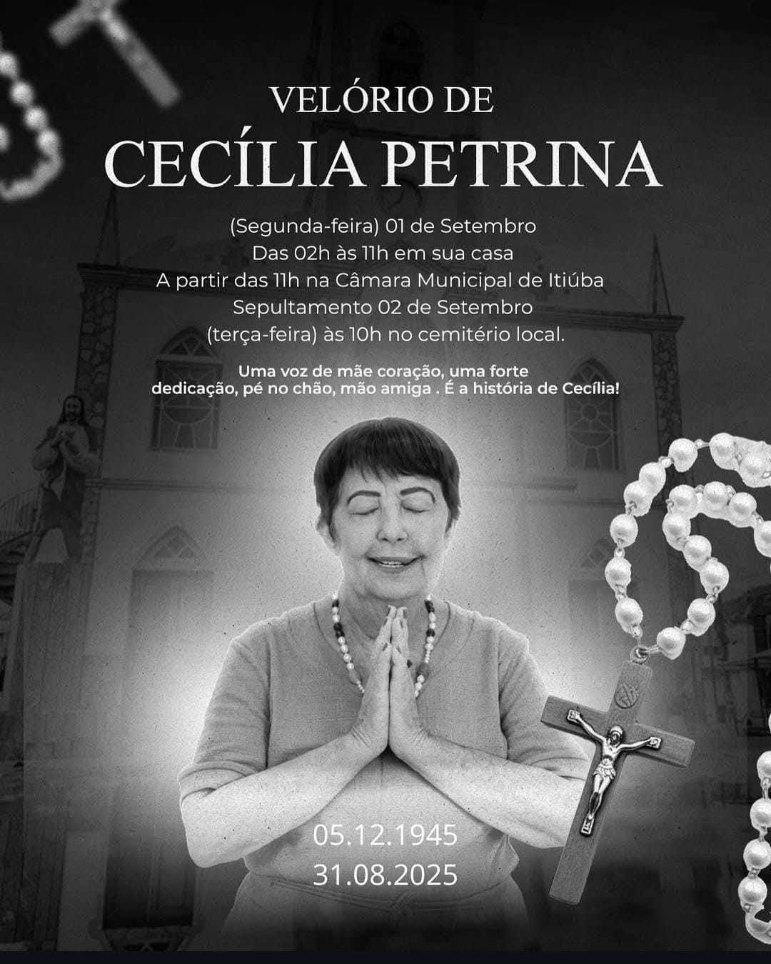Cecília Petrina deixa um legado de dedicação à vida pública e ao município de Itiúba, sendo lembrada pela coragem e pelo comprometimento com as causas que marcaram sua trajetória. Lideranças políticas e comunitárias da região já manifestaram pesar pela perda, destacando a importância de sua contribuição para o desenvolvimento local e para a luta em defesa da justiça social.