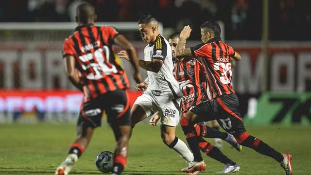Aos dois minutos, Ramon finalizou de primeira, pelo lado esquerdo, e mandou pela linha de fundo. Com as defesas levando a melhor diante dos ataques, a partida caiu de ritmo. Somente aos 22, em chute de Gustavo Scarpa, que passou perto da trave de Arcanjo, o Atlético levou perigo ao gol adversário. Aos 34, o argentino Cuello acertou o poste direito do goleiro rubro-negro. Hulk, em cobrança de falta, mandou por cima da meta, assustando a torcida do Vitória. Do outro lado, Fabri deixou marcador no chão e finalizou para a defesa de Everson. Carlinhos ainda teve chance de fazer o segundo dos donos da casa, mas desperdiçou a oportunidade. Também nos acréscimos, Cuello não conseguiu completar cruzamento de Gabriel Menino, perdendo a chance do empate. No último lance, Menino soltou a bomba, tentando surpreender o goleiro, mas colocou para fora.