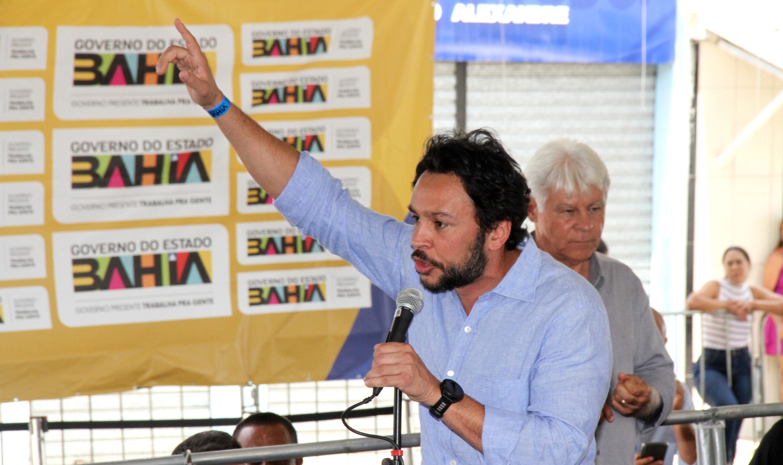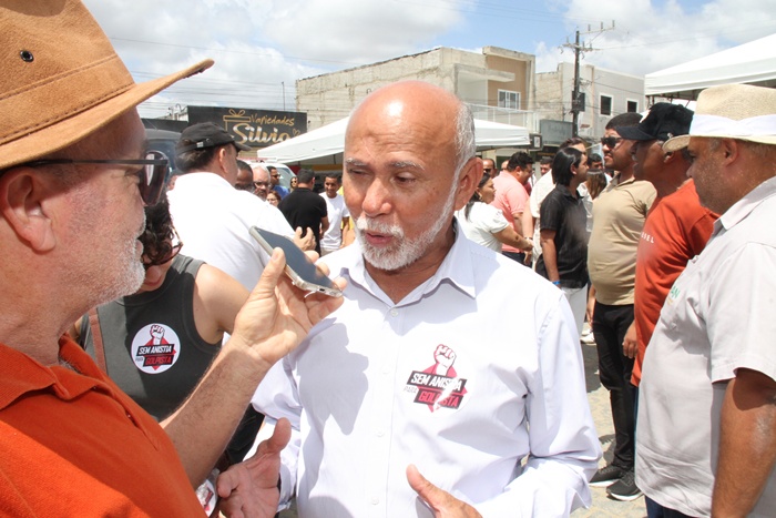 O evento em Pedro Alexandre também foi marcado pela presença do prefeito de Heliópolis, José Mendonça (MDB), que levou um grupo de apoiadores exibindo adesivos com a mesma mensagem de protesto.