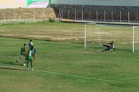 Vitinho cobra pênalti e marca o gol da vitória de Capim Grosso sobre Santaluz | Foto: Equipe Tá na Rua