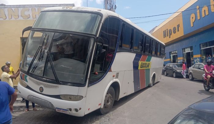 Um incidente foi registrado por volta do meio-dia desta sexta-feira (12), na Rua Marechal Deodoro da Fonseca, região central de Conceição do Coité, envolvendo um ônibus escolar, que transportava dezenas de estudantes, perdeu o controle, subiu na calçada e por pouco não tombou.