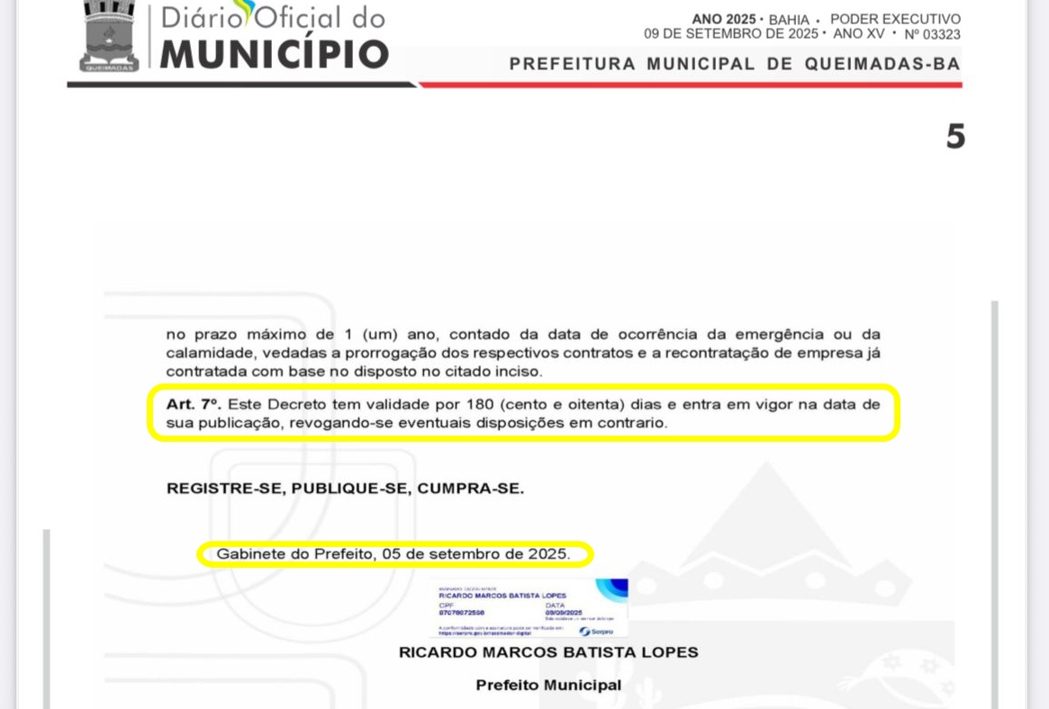 Diante da gravidade da situação, o prefeito Ricardo Lopes decretou estado de emergência e intensificou o diálogo em busca de apoio. No último sábado, 06, o gestor, acompanhado de vereadores do município, esteve em Ponto Novo, cidade vizinha, onde se encontrou com o governador Jerônimo Rodrigues. Na pauta, as dificuldades enfrentadas pelo município e a necessidade de reforço nas ações de combate à seca.
