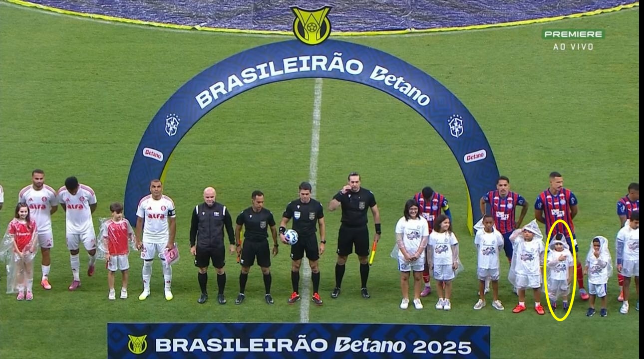No confronto entre Bahia e Internacional, a paixão do pequeno torcedor ganhou um significado ainda mais especial. Lukinhas foi uma das 11 crianças escolhidas para entrar em campo com os jogadores, vivendo de perto a emoção do futebol. Durante a cerimônia, ele acompanhou atentamente a execução do Hino ao 2 de Julho e do Hino Nacional, em um momento que certamente ficará marcado em sua memória e na história da família tricolor.