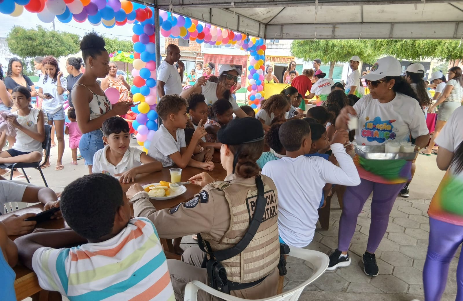 O povoado de Boa Vista, em Conceição do Coité, viveu neste domingo (12) um Dia das Crianças repleto de alegria, solidariedade e cidadania. A celebração foi marcada pela presença da Polícia Militar, por meio da 4ª Companhia do 16º Batalhão, que participou ativamente do Projeto Ação Criança, iniciativa que há três anos vem transformando o feriado em um momento especial para as famílias da comunidade.
