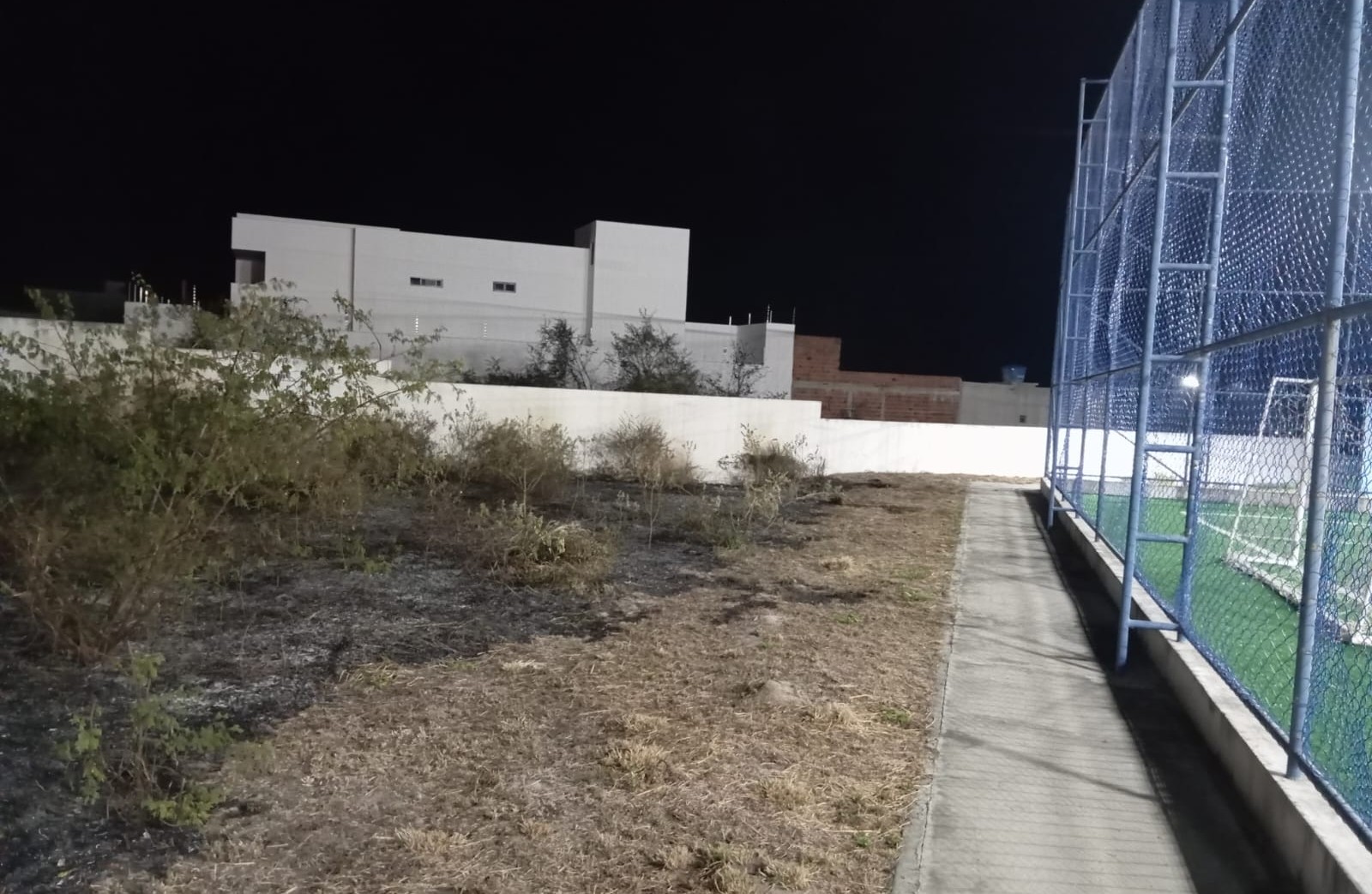 O fogo começou em um terreno baldio nos fundos da unidade escolar e, com o vento forte, fagulhas foram lançadas em direção à área interna do colégio, onde há vegetação seca próxima ao campo de futebol com grama sintética, ainda não inaugurado oficialmente. Em poucos minutos, as chamas avançaram e geraram grande preocupação entre servidores da escola.