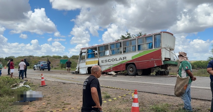 Um gravíssimo acidente envolvendo um ônibus e uma carreta deixou três pessoas mortas, entre elas uma gestante, e nove feridas na manhã desta quinta-feira (23), na BR-116 Norte, trecho entre as cidades de Tucano e Euclides da Cunha, no Nordeste da Bahia. O Calila Notícias trouxe a informação em primeira mão no ínicio da tarde, mas não tinha informações ofociais da quantidade de mortos e feridos