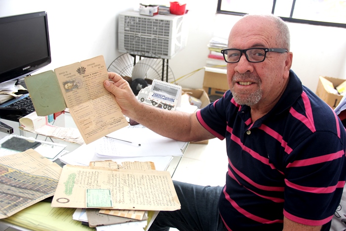 Beco guarda todos os documentos do avô, um deles é registrado o momento do desembarque dele e o passaporte