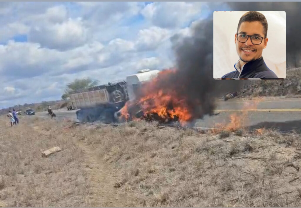 Odontólogo de Jacobina morre em acidente na BA 131. Carro colidiu com caminhão e pegou fogo