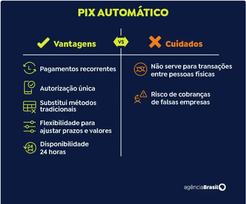 No Pix agendado recorrente, o pagador tinha de digitar a chave com a conta da empresa, o valor e a periodicidade da cobrança, o que poderia levar a erros e divergências. No Pix automático, o usuário receberá uma proposta de adesão, bastando confirmar a cobrança, podendo ajustar valores e a frequência dos pagamentos.