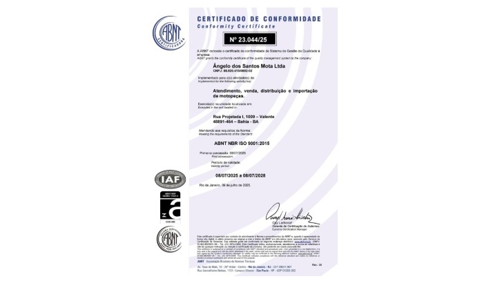 A conquista desta certificação é um feito notável no setor de motopeças, um mercado conhecido por sua alta informalidade. O fato de uma empresa do interior da Bahia, como a ZCM, ter alcançado tal reconhecimento reforça de forma contundente sua exclusividade e seu diferencial competitivo. Para você, cliente, isso significa mais confiabilidade, processos padronizados, redução de falhas e a certeza de estar lidando com uma empresa comprometida em superar expectativas.