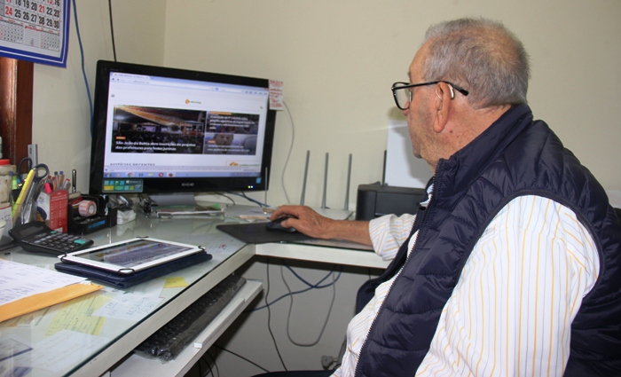Quando se interessava por determinada reportagem ele mandava imprimir para mostrar e comentar com as pessoas.Nesta foto senhor Evódio tinha 91 anos