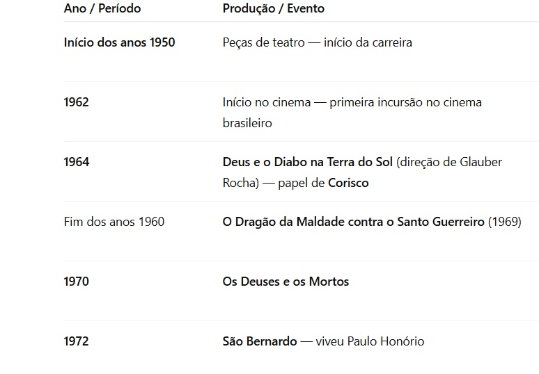 Dono de uma presença cênica rara, ele participou de obras emblemáticas do cinema brasileiro — incluindo trabalhos no Cinema Novo — e deixou sua marca também na televisão, onde atuou em novelas, minisséries e especiais de grande repercussão. No teatro, sua força interpretativa e versatilidade o tornaram referência entre gerações de artistas.