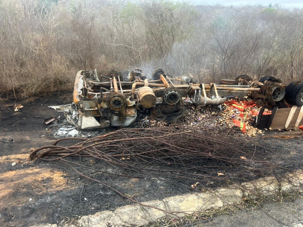 Segundo a Polícia Rodoviária Estadual (PRE), o veículo de placa OVO-0203, cor branca, seguia no trecho entre Maracás e Nova Itarana quando o motorista perdeu o controle da direção, resultando no capotamento. Logo após o acidente, o caminhão foi consumido pelas chamas.