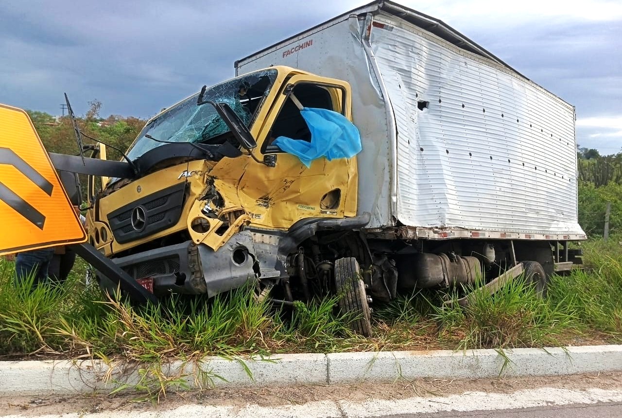 A força do impacto destruiu totalmente a cabine do caminhão e deixou a pista parcialmente interditada enquanto equipes da PRF, do SAMU e brigadistas realizavam resgate e remoção dos veículos.