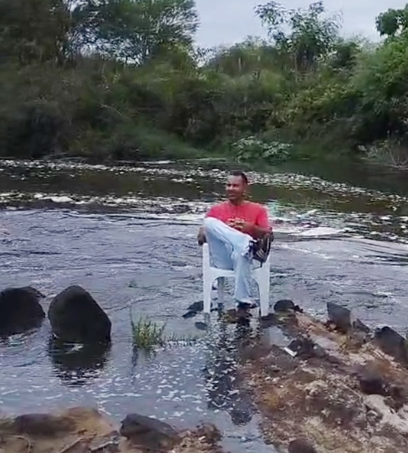 A ansiedade tomou conta. Santana confessou que mal conseguiu dormir. Ao amanhecer, retornou ao rio e confirmou que o cenário continuava o mesmo: terra rachada, silêncio e nenhuma lâmina d’água descendo o vale. “Passou de nove horas quando perdi a paciência. Aí eu, Bruno Reis e o filho dele, Breno, junto com Marcelo e Douglas, resolvemos andar pelo leito do rio pra ver se encontrava a água.”, explicou.