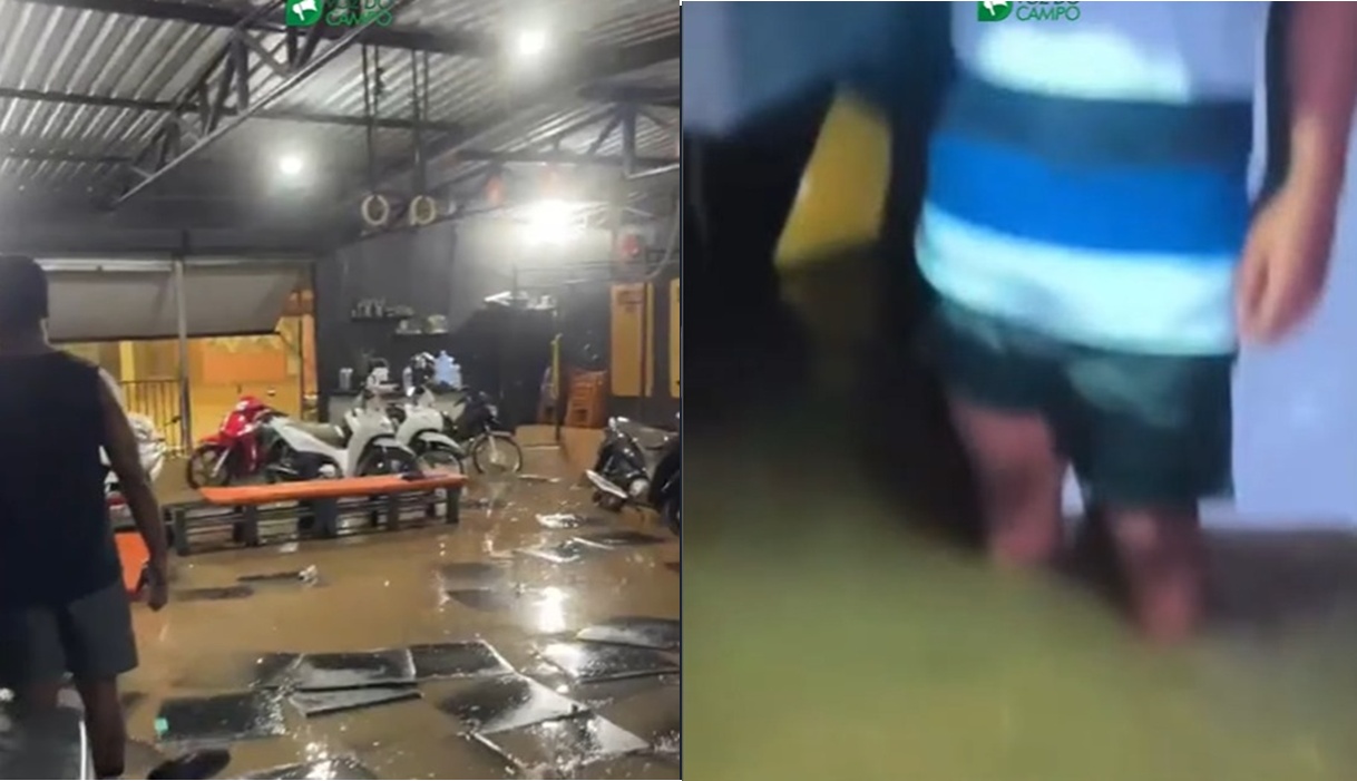 Imagens mostram ruas completamente tomadas pela água, veículos tentando trafegar em meio a enxurradas e casas invadidas pela força da chuva. Em alguns bairros, moradores relataram dificuldade para sair de casa e prejuízos em imóveis e comércios atingidos.