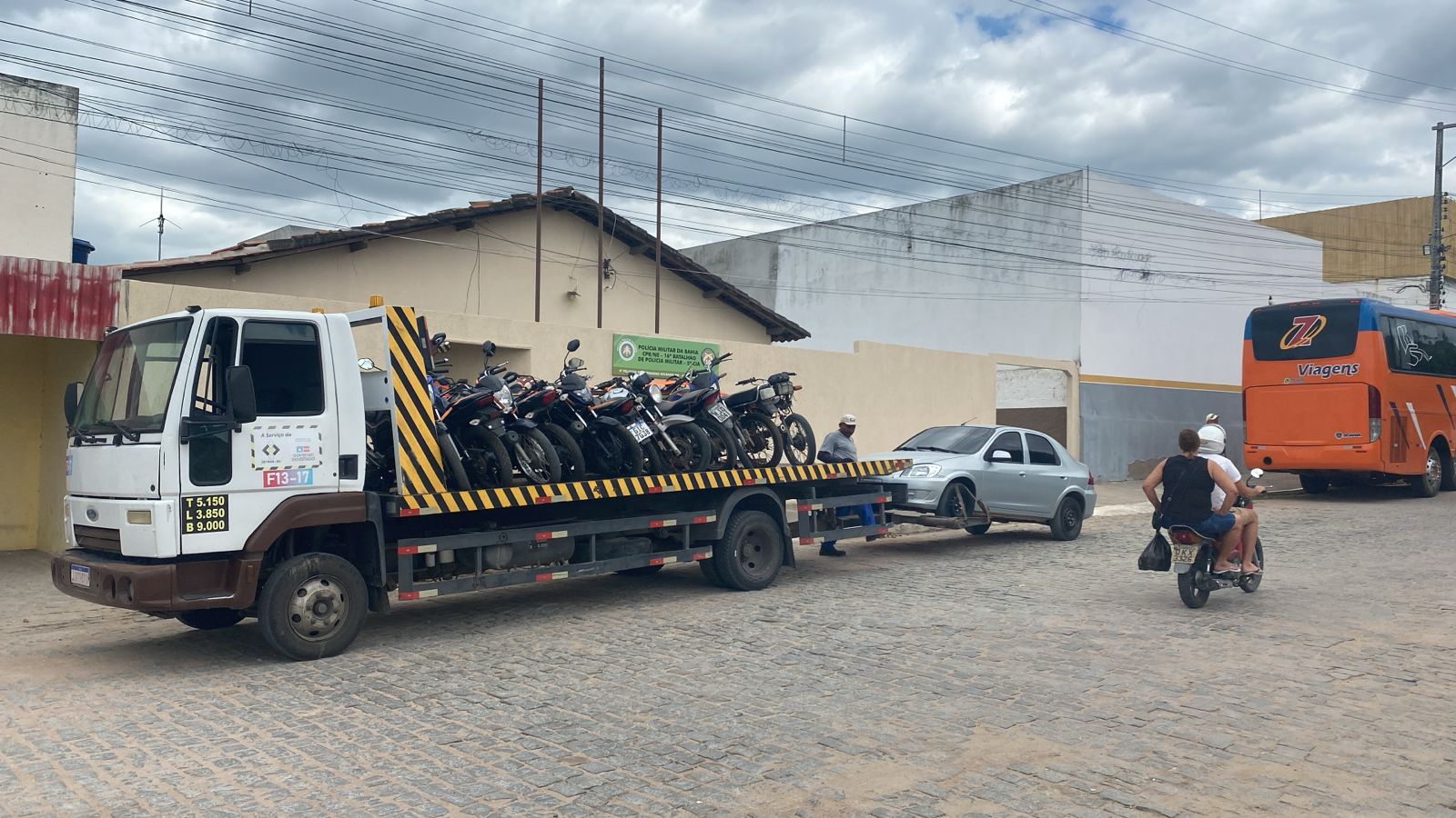 Do total, 12 motocicletas e o automóvel estavam na sede do 4º Pelotão, em Queimadas, enquanto 4 motocicletas no 2° Pel em Cansanção. Todos os veículos foram conduzidos ao pátio credenciado do DETRAN, na cidade de Senhor do Bonfim, para as medidas administrativas cabíveis.