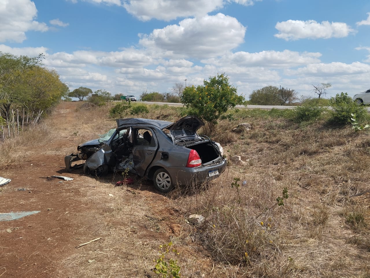 A equipe dos Anjos da Caatinga foi acionada para atender a ocorrência de um capotamento envolvendo um veículo Toyota Etios.