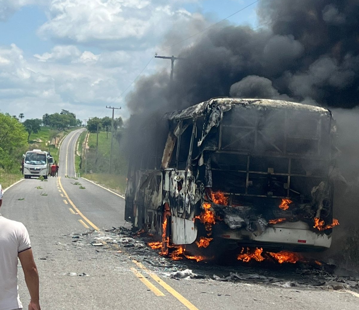 No fim da manhã desta quarta-feira, 03, um ônibus pegou fogo na pista de acesso ao distrito Cachoeira Grande, município de Jacobina.