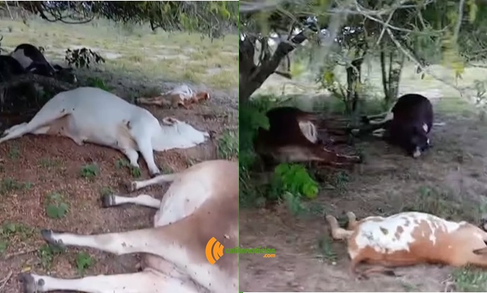 O proprietário relatou que, ao chegar na roça para apartar e prender o gado, encontrou os animais mortos embaixo de um umbuzeiro. A cena surpreendeu e comoveu os moradores locais.