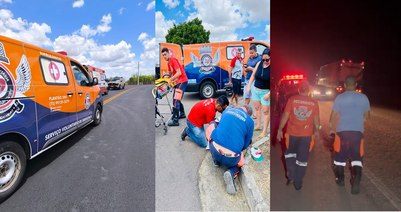 A Brigada Voluntária Anjos Jacuipenses atendeu três ocorrências de acidentes de trânsito em pontos distintos do município de Riachão do Jacuípe e Ichu, entre o início da tarde e a noite desta terça-feira, 13.