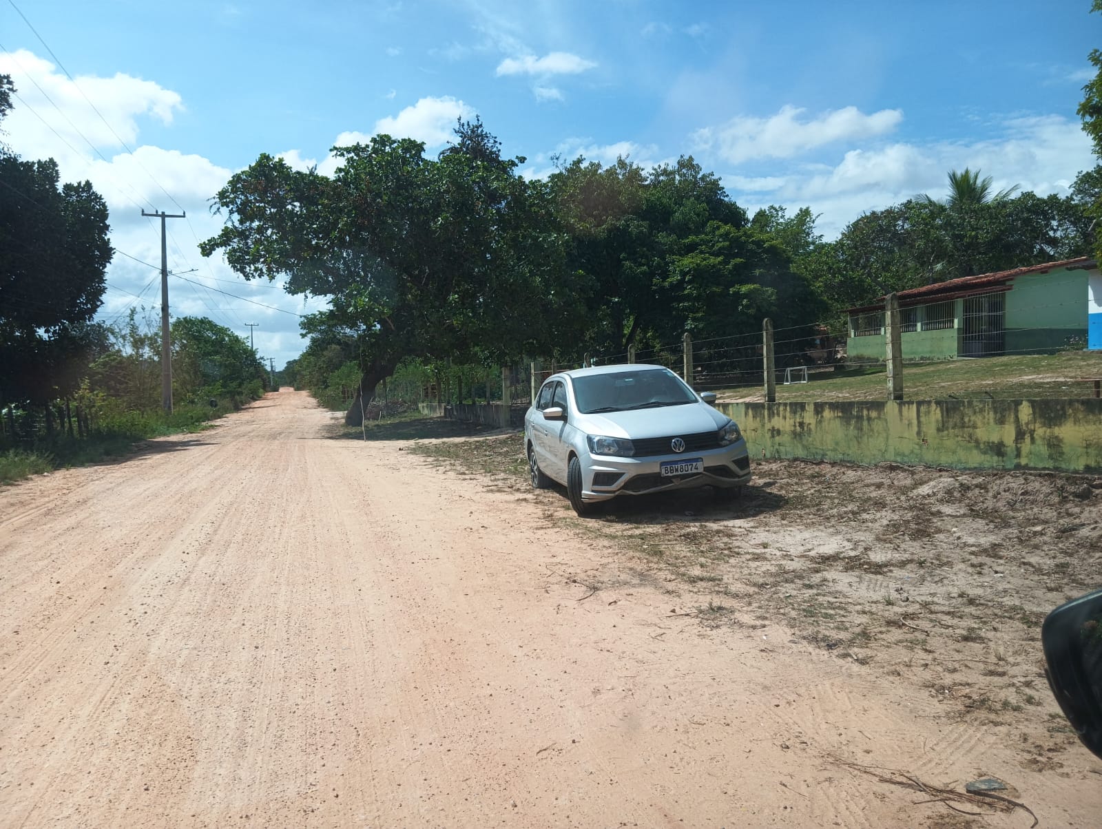 Um veículo da marca Volkswagen, modelo Voiage de cor prata, está abandonado desde a última sexta-feira, dia 16, em frente à antiga Escola Santa Teresa e ao posto de saúde da comunidade de Rio Grande, zona rural do município de Ouriçanga, no território do Litoral Norte e Agreste baiano.