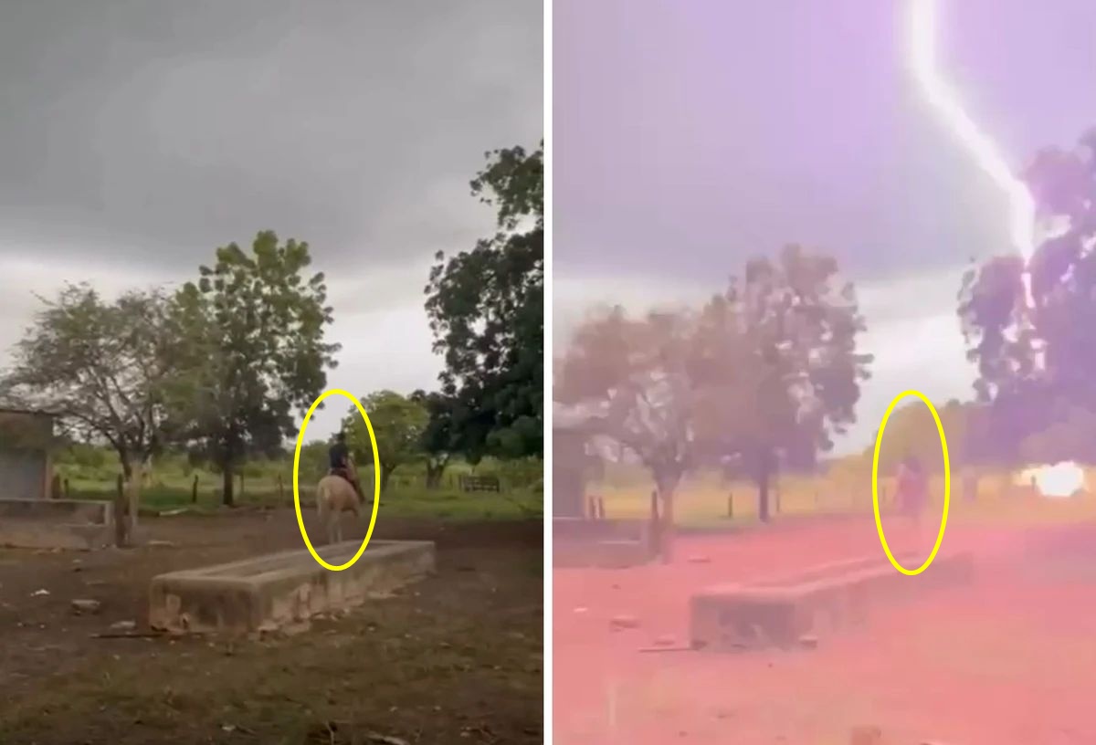 Cena impressionante: raio cai ao lado de homem montado a cavalo