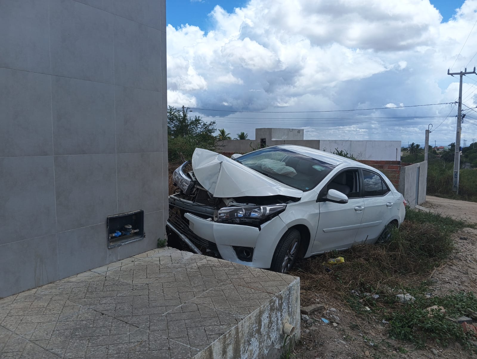Coité – “Teixeirinha” perde controle de direção e bate Corolla em muro de residência