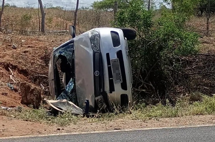 Território do sisal – Dois homens ficaram feridos após um carro capotar na rodovia BA-120, nas proximidades da comunidade do Pombo, no município de Queimadas, na tarde de domingo (11).