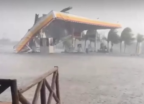 De acordo com informações, o fenômeno climático aconteceu de forma repentina, já que não havia previsão de chuva para o município no domingo. A força do vento foi suficiente para arrancar parte da estrutura do posto, causando prejuízos materiais.