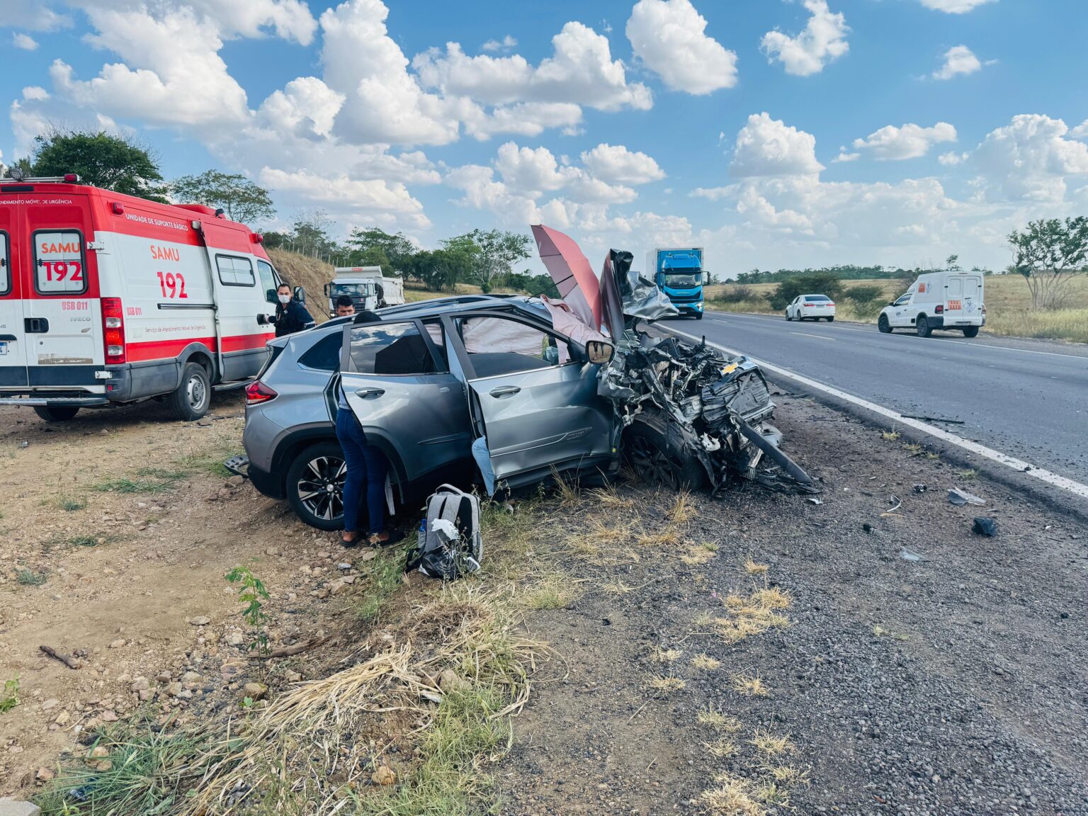 A colisão teria ocorrido após uma ultrapassagem malsucedida. Os dois veículos — um Fiat Pulse e um Chevrolet Tracker — tentaram desviar simultaneamente pelo acostamento e acabaram batendo de frente.